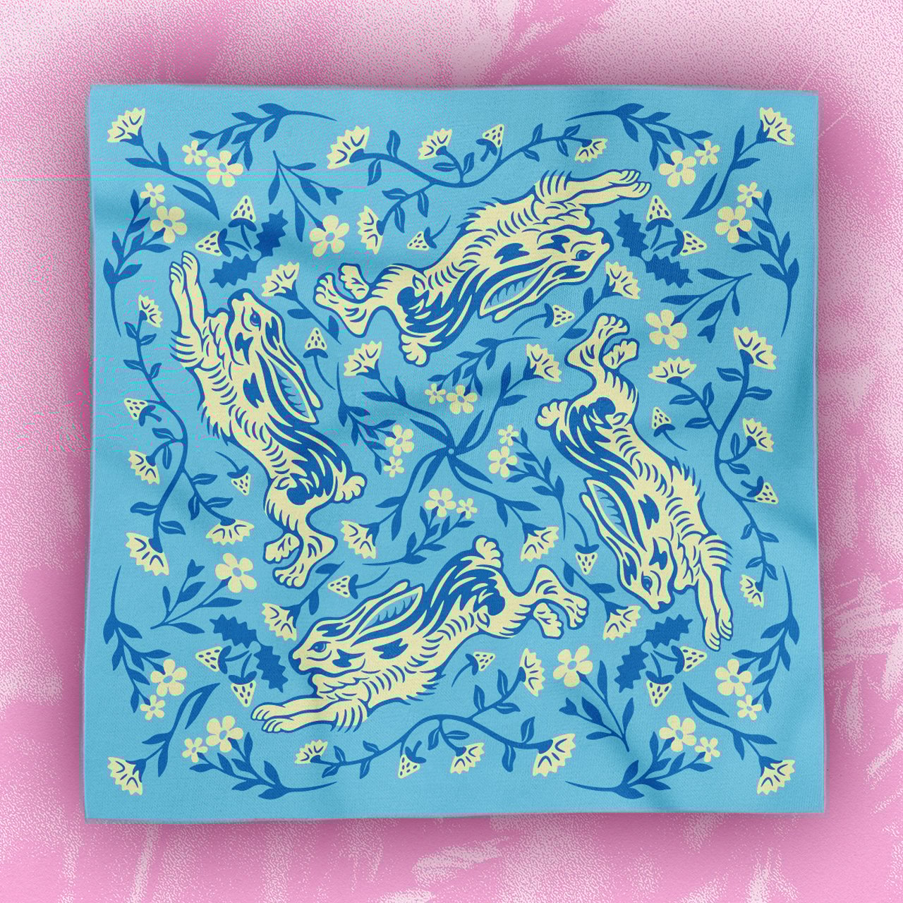 Perfect for tying around your neck, draping from your back pocket, or hanging on the wall... the possibilities are endless with this bandana! It's printed with water-based ink for the softest touch possible, and comes in 2 different fabric colours (light pink or blue).