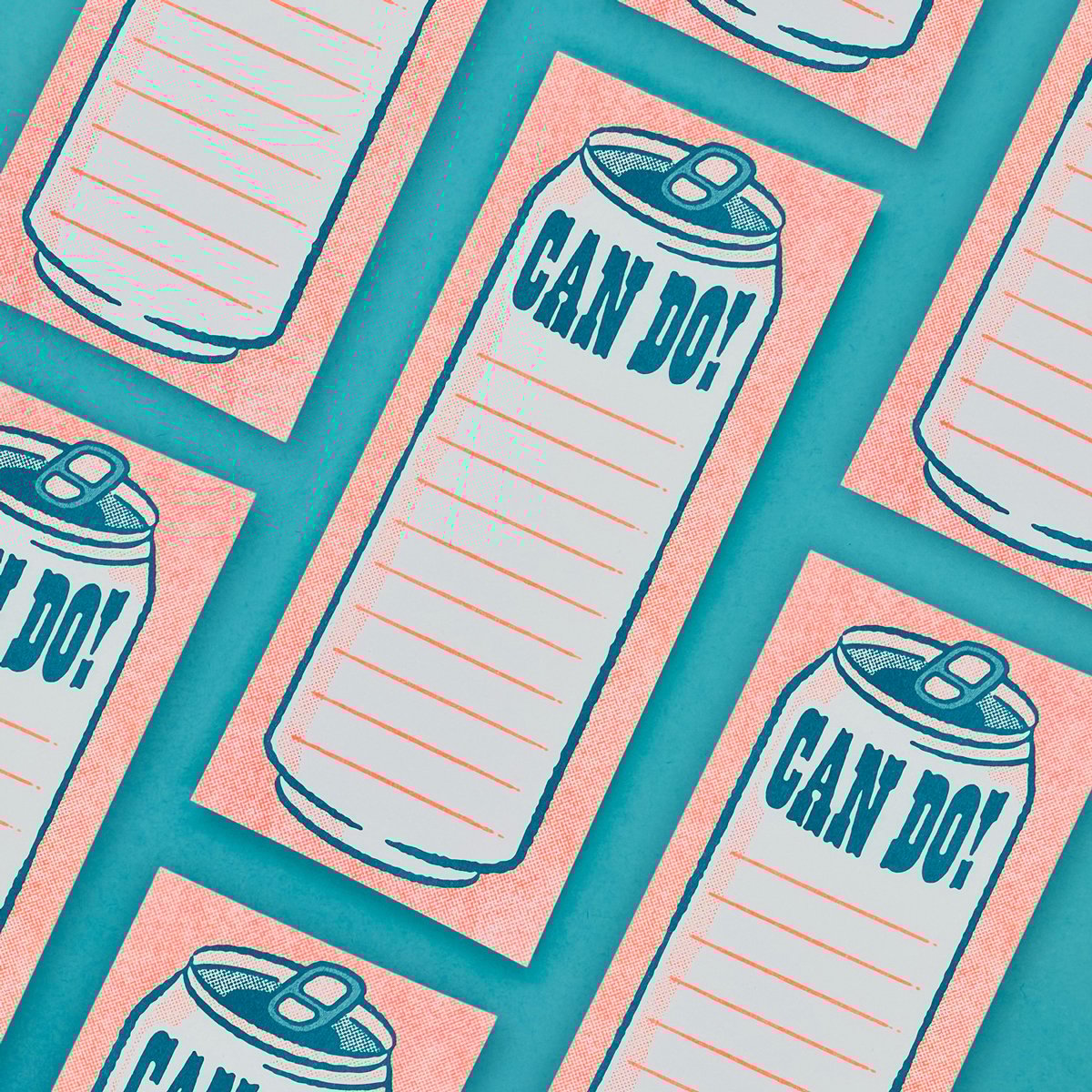 50 page notepad, printed in delicious fluorescent orange and teal risograph inks for Gettin ‘Er Done in style.